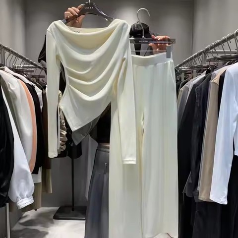 Wholesale Spring New Solid Color Irregular Waist High Waist Loose Straight Leg Casual Women's Set